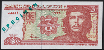 キューバ革命直後、チェ・ゲバラはキューバ国立銀行(中央銀行)総裁を務めていた時期があったため、券面左側下部に「che」とサインしている。
